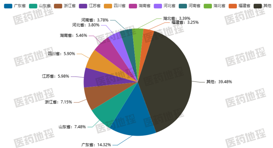 2025年Q2国内中药市场销售额地区分布呈现出明显的梯队化与地域性特征:广东省以14.32%的绝对优势领跑全国,这凸显其作为中医药文化核心区(岭南文化)和消费大省的双重地位,深厚群众基础与强劲购买力共同支撑了市场容量;山东省(7.48%)、浙江省(7.15%)、江苏省(5.98%)构成的第二梯队,既是经济强省又兼具悠久中医药使用传统,反映了经济发展水平与健康消费支出的紧密关联;四川省(5.90%)、湖南省(5.46%)作为第三梯队,则体现了区域性疾病谱特色(如川湘潮湿气候引发的相关需求)和地方药材资源禀赋对消费的拉动作用。